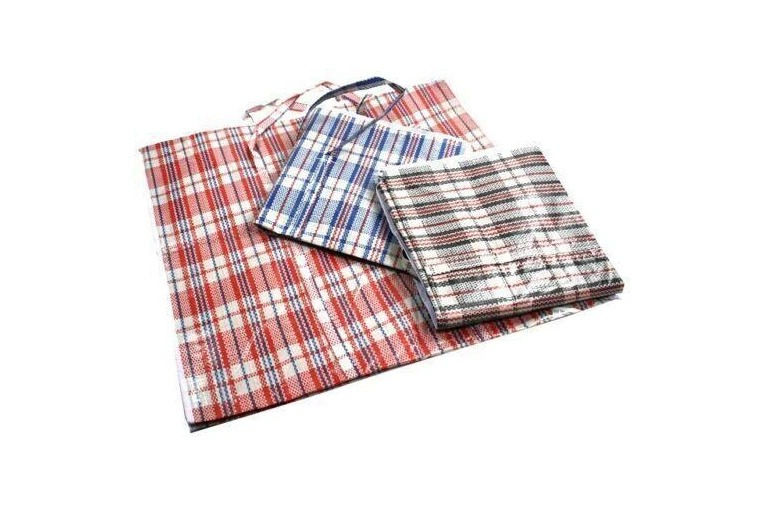 Material ultra resistente: Hecho de lona plástica tejida (polipropileno), un material conocido por su durabilidad, resistencia a desgarros y a la humedad.